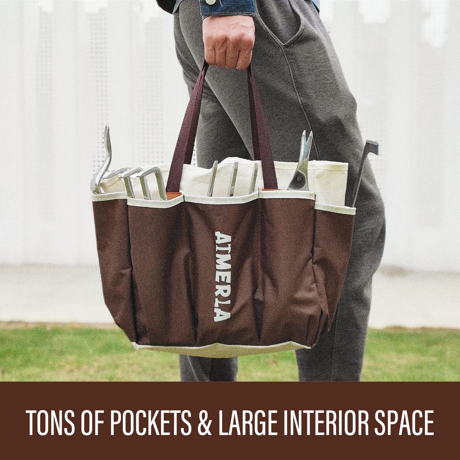 - TONS OF POCKETS & LARGE INTERIOR SPACE BAG !Our tool hand bag boasts 8 exterior pockets versatile storage of tools, shears, screwdrivers and accessories. It will keep your gear organized and secure, no more digging through the bag to find that one tool. The bag is designed with large interior space which affords you retrieval of any tool.Improved and upgraded deep pocket design ensures that your tools won't slip out of the pocket.